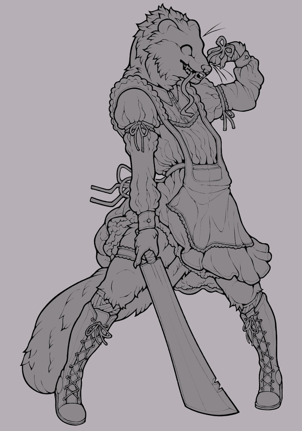 I accept furry, feral, and humans. Still experimenting with the latter, so I may deny the character if I feel I can't! I accept robotic features, armor, clothes, weapons, props, and so on.